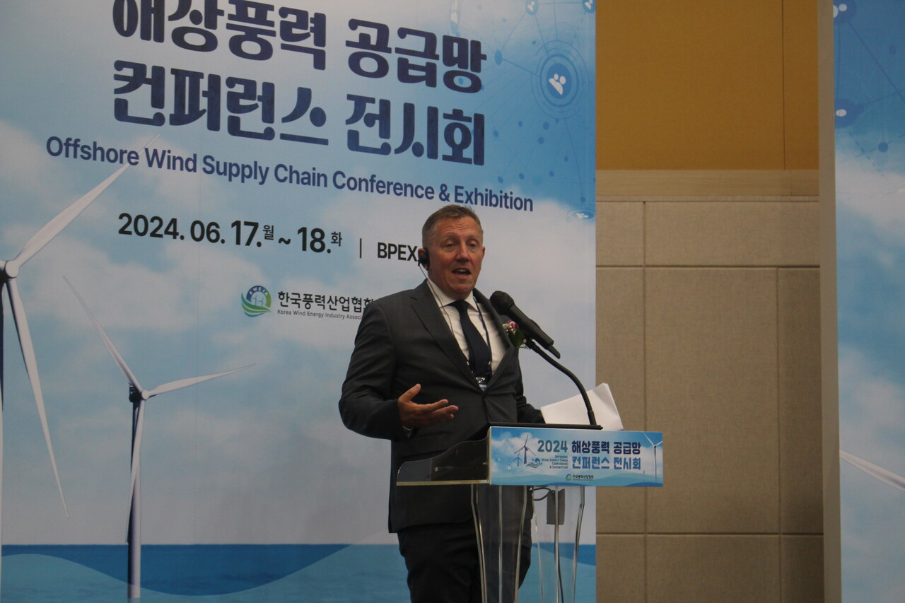 º¥ ¹éÀ£(Ben Backwell) GWEC ´ëÇ¥°¡ ±Û·Î¹ú ÇØ»ódz·Â Àü¸ÁÄ¡¸¦ ´ãÀº ¡®2024 Offshore Wind¡¯¸¦ ¹ßÇ¥Çϰí ÀÖ´Ù.(»çÁø=¾È»ó¹Î±âÀÚ)